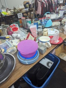 Members of the Linder congregation contribute gently used clothing, furniture, toys, books, and various household items for the event. Then, we invite our neighbors to come by and pick up whatever they need for free.