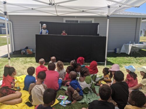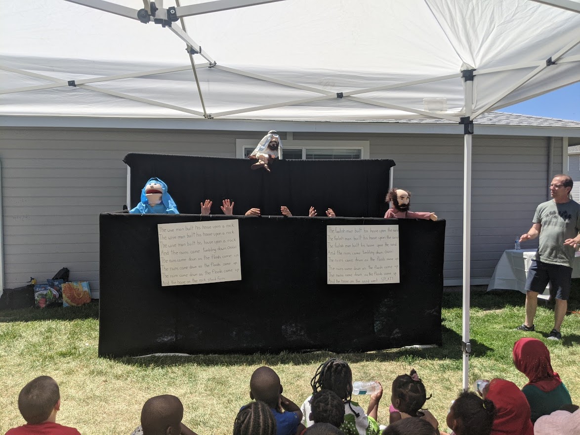 The sound of laughing children and shared conversation filled the air as the show ended and the kids finished off their treats while interacting with the puppets, the puppeteers, and the rest of the Linder group. It was a delightful time of making new friends and sharing the love of Jesus in this community, where many of the resident families are refugees from other countries, seeking to rebuild their lives in the Treasure Valley.